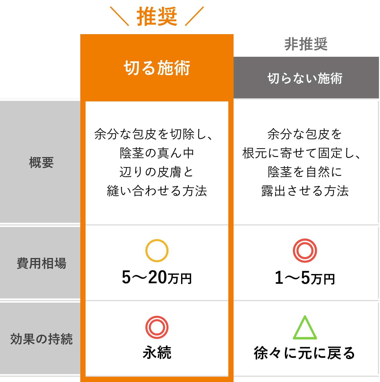 環状切開法、亀頭直下法、亀頭直下埋没法、切らない施術etc…